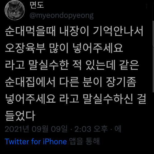 프로필 사진 순대 먹을 때 내장이 기억 안나서. Level 50초신성의꿈+5 조회수 : 12 |  26.04.02